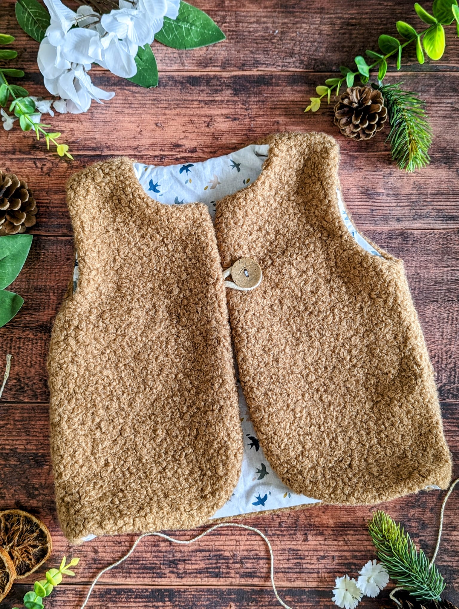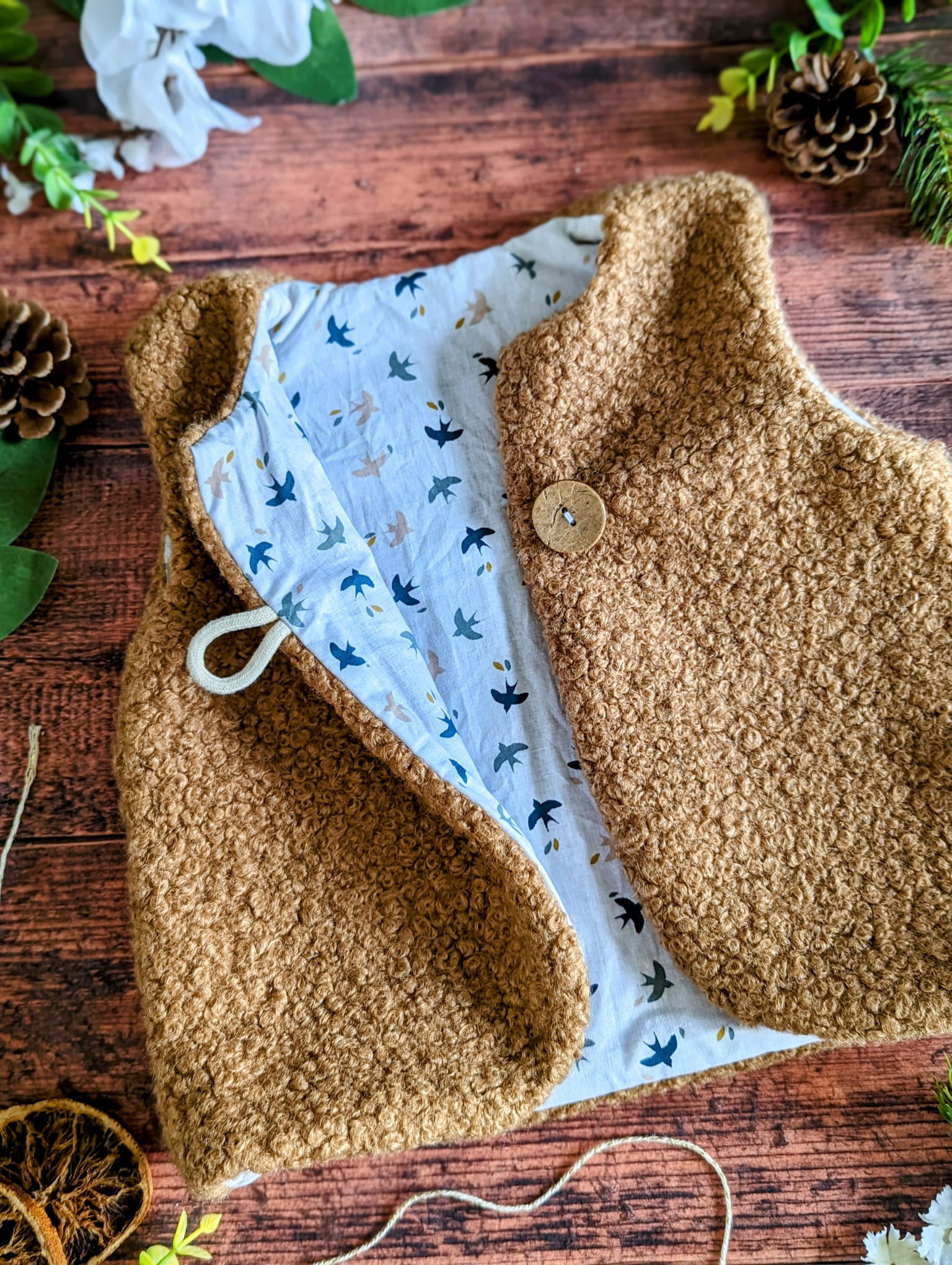 Offrez à votre enfant un gilet de berger doux, chaud et tendance, parfait pour la saison automne/hiver. Ce modèle artisanal est entièrement confectionné à la main dans notre atelier en Haute-Savoie, avec des tissus de qualité sélectionnés avec soin.